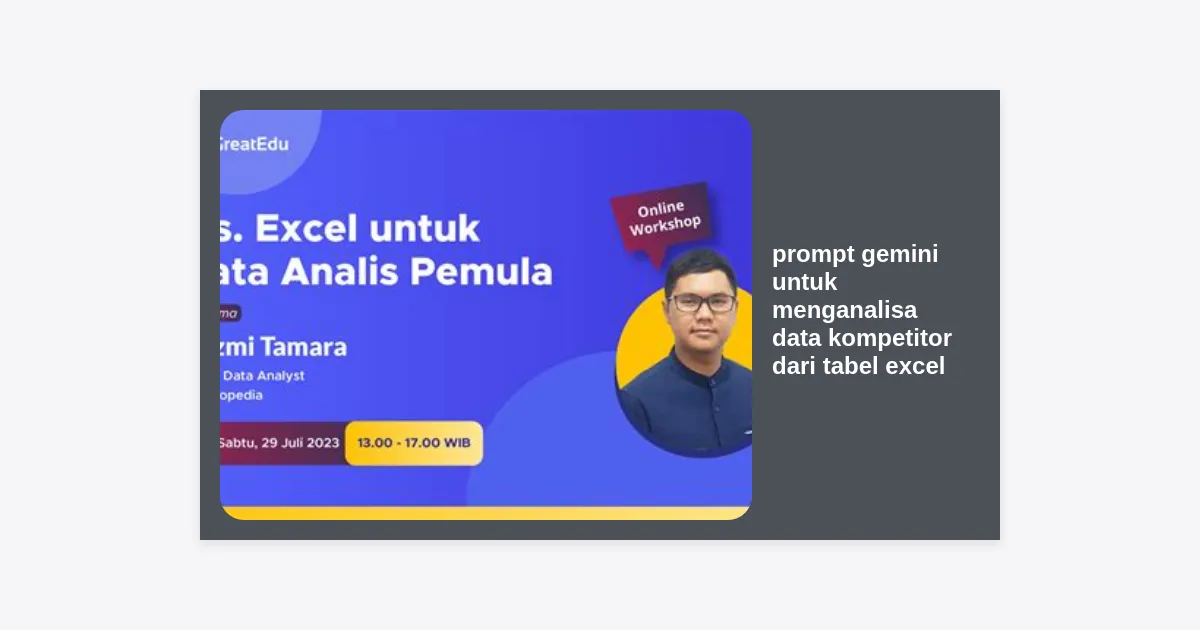 Daftar Isi Pendahuluan: Pentingnya Analisis Kompetitor Berbasis AI Mengapa Menggunakan Gemini untuk Analisis Excel? Persiapan Data Excel Sebelum Dianalisis Cara Mengunggah...