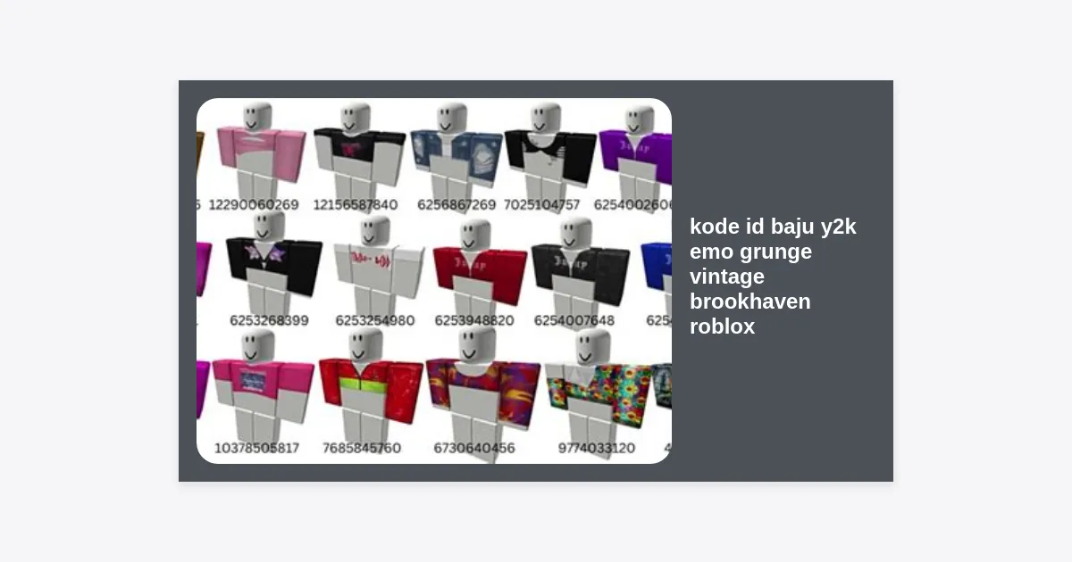 Selain artikel ini, kamu bisa mencari di Pinterest atau grup komunitas Roblox di Discord. Banyak kreator membagikan kode id baju y2k emo grunge vintage brookhaven roblox karya mereka di sana secara berkala.