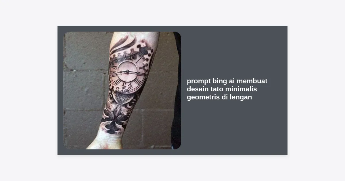 Menggunakan prompt bing ai membuat desain tato minimalis geometris di lengan adalah cara yang revolusioner untuk menemukan identitas visual Anda. Dengan kemudahan akses dan kecepatan yang ditawarkan, siapa pun kini bisa memiliki desain tato yang unik dan penuh makna.