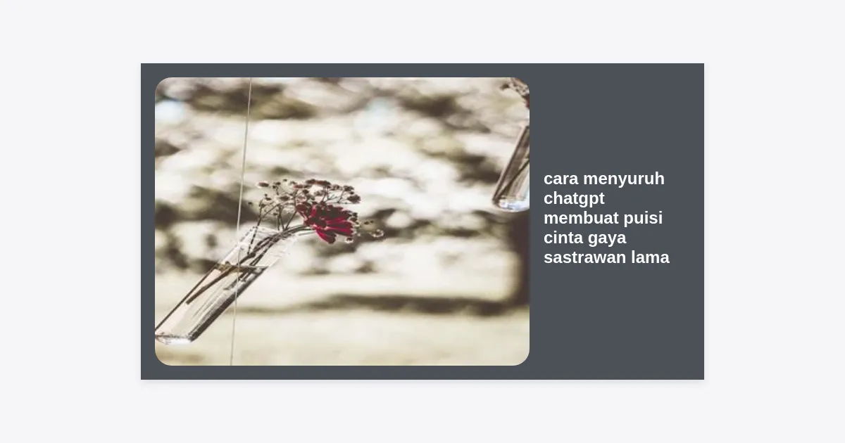 Berikut adalah beberapa contoh konkret cara menyuruh ChatGPT membuat puisi cinta gaya sastrawan lama yang bisa Anda copy-paste dan modifikasi sesuai kebutuhan: